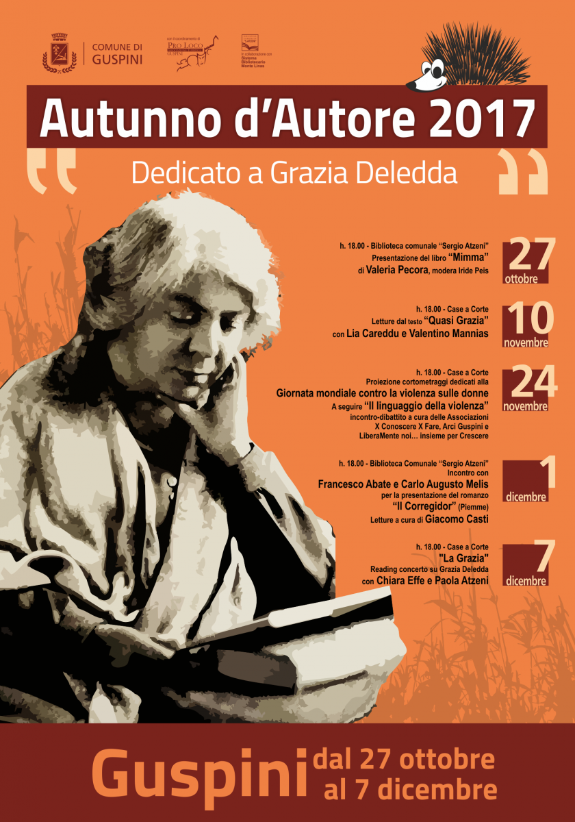 Autunno d’autore 2017, la kermesse culturale che ha animato gli ultimi mesi di Guspini, è giunta alla sua conclusione. Come è noto, quest’anno la manifestazione è stata dedicata alla scrittrice Grazia Deledda e il 7 dicembre 2017 alle 18 andrà in scena l’ultimo appuntamento a Case a corte: il reading - concerto "La Grazia” ad opera delle cantanti e musiciste sarde Chiara Effe e Paola Atzeni, due tra le voci più giovani e promettenti dell’intero paese.